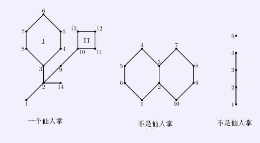 举例来说,上面的第一个例子是一张仙人图,而第二个不是——注意到它有三条简单回路:(4,3,2,1,6
