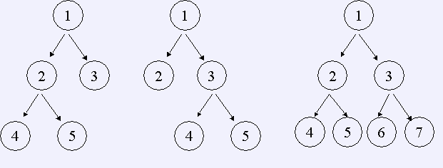(根的深度为0),那么我们称它为一棵深度为d的严格n元树。例如,深度为2的严格2元树有三个,如下图: