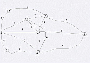 4,5,并且在2停留的时候在3之前,而在4,5停留的时候在3之后。那么最短的旅行方案是1-2-4-3-4-5-8,总长度为1