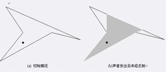 的反射遵循反射角等于入射角,如图1。墙角不能反射声音,而每面墙的其他部分——即使离墙角很近——都可以