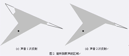 c) 声音1次反射 (d) 声音2次反射图2. 能听到歌声的区域