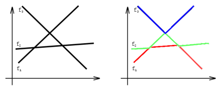 如上左图就是3个满足条件的函数,最左边从下往上依次为f1;f2;f3。右图中红色部分是这整个函数图像的最低层