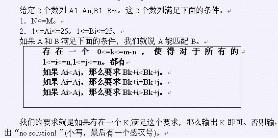 一行对应一个数据。 如果有解,输出k。否则输出“no solution!”