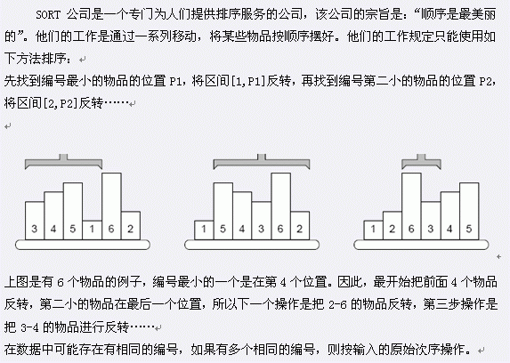DescriptionInput输入共两行,第一行为一个整数N,N表示物品的个数,1<=N<=100000。 第二行为N个用空格隔开的正整数,表示N个物品最初排列的编号。Output输出共一行,N个用空格隔开的正整数P1,P2,P3…Pn,Pi表示第i次操作前第i小的物品所在的位置。 注意:如果第i次操作前,第i小的物品己经在正确的位置Pi上,我们将区间[Pi,Pi]反转(单个物品)。Sample Input6 3 4 5 1 6 2Sample Output4 6 4 5 6 6HintSourceHNOI2009集训Day6