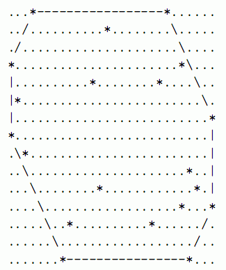 为了防止口渴的食蚁兽进入他的农场,Farmer John决定在他的农场周围挖一条护城河。农场里一共有N(8<=N<=5,000)股泉水,并且,护城河总是笔直地连接在河道上的相邻的两股泉水。护城河必须能保护所有的泉水,也就是说,能包围所有的泉水。泉水一定在护城河的内部,或者恰好在河道上。当然,护城河构成一个封闭的环。 挖护城河是一项昂贵的工程,于是,节约的FJ希望护城河的总长度尽量小。请你写个程序计算一下,在满足需求的条件下,护城河的总长最小是多少。 所有泉水的坐标都在范围为(1..10,000,000,1..10,000,000)的整点上,一股泉水对应着一个唯一确定的坐标。并且,任意三股泉水都不在一条直线上。 以下是一幅包含20股泉水的地图,泉水用"*"表示