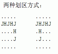 农场被划分为5x5的格子,每个格子中都有一头奶牛,并且只有荷斯坦(标记为H)和杰尔西(标记为J)两个品种.如果一头奶牛在另一头上下左右四个格子中的任一格里,我们说它们相连.    奶牛要大选了.现在有一只杰尔西奶牛们想选择7头相连的奶牛,划成一个竞选区,使得其中它们品种的奶牛比荷斯坦的多.  要求你编写一个程序求出方案总数.
