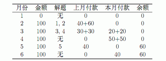 牛们的月薪是100元. 他们有5道题目要做, 预期付款分别为 40, 60, 30, 30,