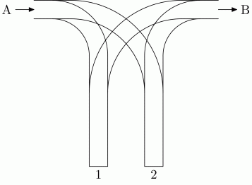 一个铁路包含两个侧线1和2,右边由A进入,左边由B出去(看下面的图片)