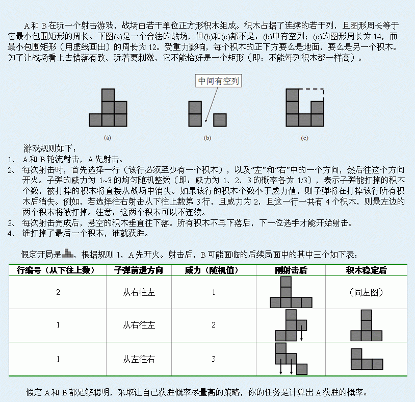 对于每组数据,输出仅一行,即A获胜的概率,四舍五入保留六位小数。