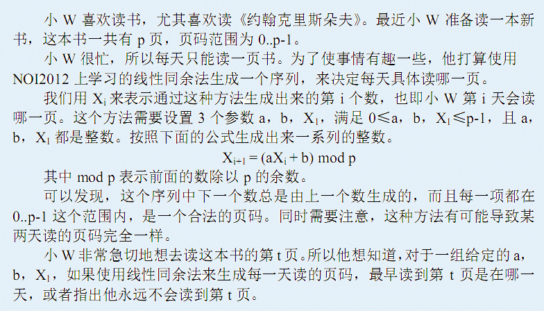 接下来T行,每行有五个整数p,a,b,X1,t,表示一组数据。保证X1和t都是合法的页码。