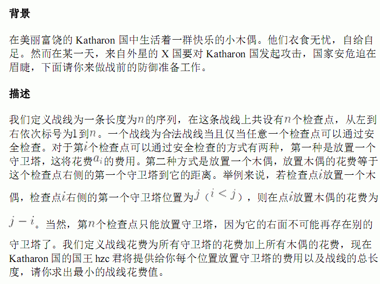 第二行N个整数,第i个整数表示在位置i放置守卫塔的花费Ai
