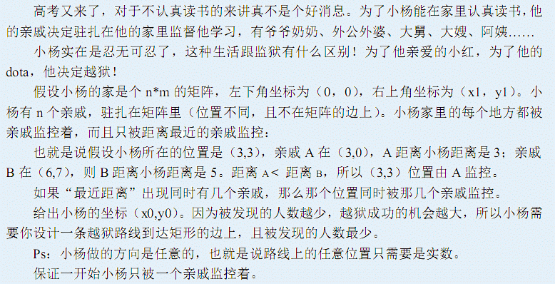 Description InputOutputSample Input2 4 10 10 5 5 5 6 3 5 7 5 5 3 17 14 12 7 6 7 11 6 9 7 7 1 10 2 20 1 6 2 6 1 1 2 2 5 1 5 2 13 1 12 2 12 7 13 7 12 11 13 11 Sample Output1 2HintSource