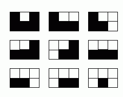 The first line in the input contains an integer T (less than 100), the number of cases to follow. Each case starts with two integers, M and N (2 ≤ M, N ≤ 8), the number of rows and columns respectively in the grid. The next M lines contains N characters each and describes the grid using the following characters: