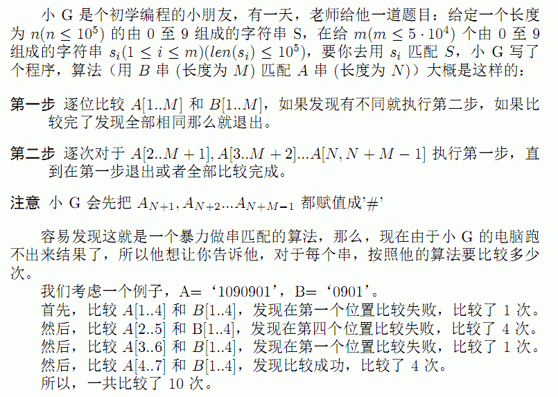 输出m行,第i行表示第si和S匹配所比较的次数。