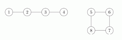 The M lines that follow specify the waterways. A single waterway's description consists of a single line that contains two integers, a and b (1<=a,b<=N,a<>b) separated by a single space; these specify the numbers of ports at the two ends of this particular waterway.