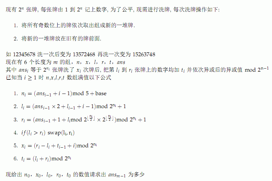 接下来1行包含6个整数,分别为n,x,L,r,t,Base