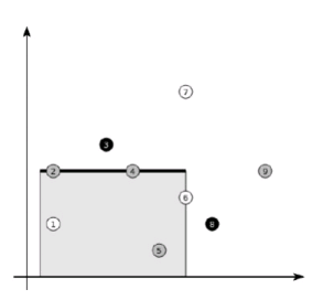 你可以选择一条水平的线段获得在其上方或其下方的所有点,如图所示: