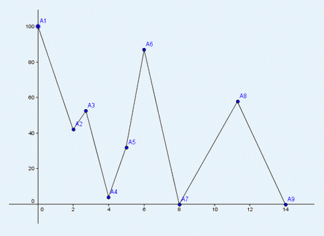山由一个顶点集:A1,A2…An给定,保证Ai的x单调递增。我们将Ai和Ai+1之间连上线段,表示山的某一段。如下图所示: