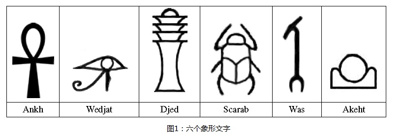 为了了解早期文明,考古学家们经常会研究古代语言的书籍。有这样一种语言,它在3000多年前古老的埃及曾经被使用,是一种基于象形符号的语言。图1表示了六种象形符号以及它们的名字。在这个问题中,你需要写一个程序去辨识这6个字符。