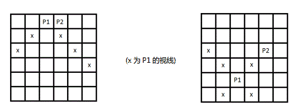 到其视线中任意一点。视线的范围为力量所在点的两条斜线上的任意一个除自己以外其它点,特别的,如果斜线上