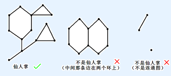 如果一个无向连通图的任意一条边最多属于一个简单环,我们就称之为仙人掌。所谓简单环即不经过重复的结点的环。