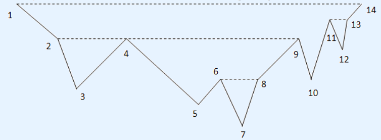 You own a park located on a mountain, which can be described as a sequence of n points (xi, yi) from left to right, where xi,yi>0, xi<xi+1, yi!=yi+1  (that means there will not be horizontal segments in the mountain skyline), illustrated below(the numbers are the corresponding x-coordinate):