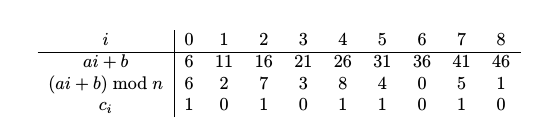 给定n,a,b,p,其中n,a互质。定义一个长度为n的01串c[0..n-1],其中c[i]==0当且仅当(ai+b) mod n < p。
