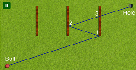 The behaviour of the ball is also affected by the power of the shot. In particular, an optimal shot may need to first roll over the hole, then hit some more walls, and only later drop into the hole.