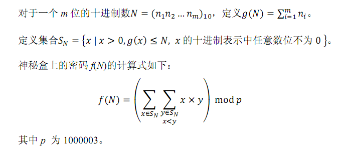 DescriptionInput输入仅包含一行一个整数 NOutput输出仅包含一行一个整数 f(N)。 3 < = N < = 10^18Sample Input2Sample Output35 提示 SN={1, 2, 11},故 f(N)=1×2+1×11+2×11=35。HintSourceBy 佚名上传
