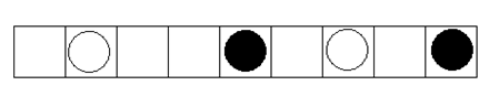 这个游戏是在一个1*n的棋盘上进行的,棋盘上有k个棋子,一半是黑色,一半是白色。最左边是白色棋子,最右边