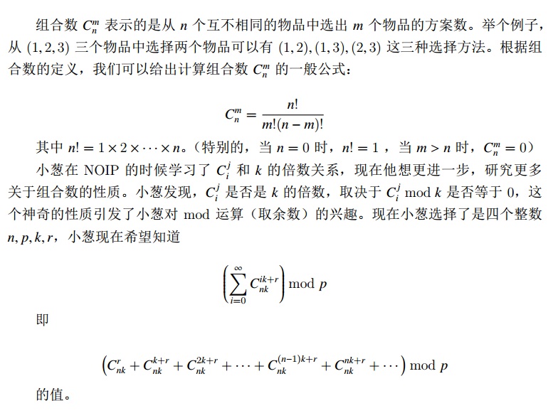 DescriptionInput第一行有四个整数 n, p, k, r,所有整数含义见问题描述。 1 ≤ n ≤ 10^9, 0 ≤ r < k ≤ 50, 2 ≤ p ≤ 2^30 − 1Output一行一个整数代表答案。Sample Input2 10007 2 0 Sample Output8HintSource黑吉辽沪冀晋六省联考